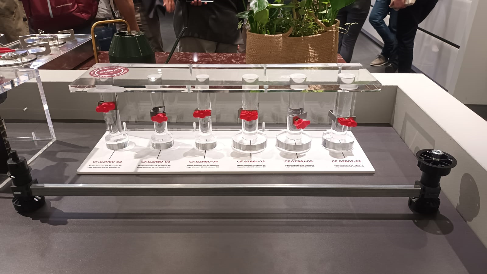 También pudimos conocer en el Stand de Scilm su nueva catenaria que se coloca en la parte inferior del hueco destinado al lavavajillas panelado, asegurando un ajuste perfecto durante la instalación. Su función es garantizar el espacio exacto necesario para un encastre limpio, alineado y seguro. Compatible con el sistema de pinzas que permite fijar el zócalo a la distancia correcta de forma rápida y sin necesidad de herramientas.