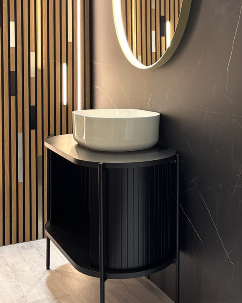 Persiana Box Milano con un innovador diseño circular, ideal para crear islas de cocina y muebles de baño con diseños envolventes y sofisticados que aporten un acabado moderno y funcional