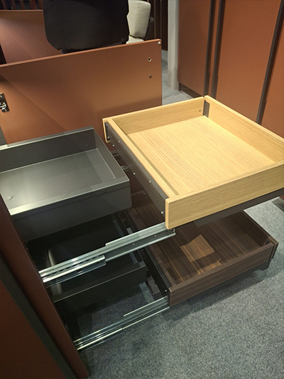 También entre sus nuevos productos, se encuentran las versiones retranqueadas de los sistemas de residuos de gran capacidad, diseñados para una organización eficiente en la cocina. Permiten la convivencia de los cubos con sistemas de filtrado y osmosis en un mismo módulo. Incluye tapas en los cubos y una tapa metálica tipo bandeja, ideal para colocar esponjas y guantes. Incorporan guía Grass para un deslizamiento suave y están disponibles para bases de 300 a 600 mm.