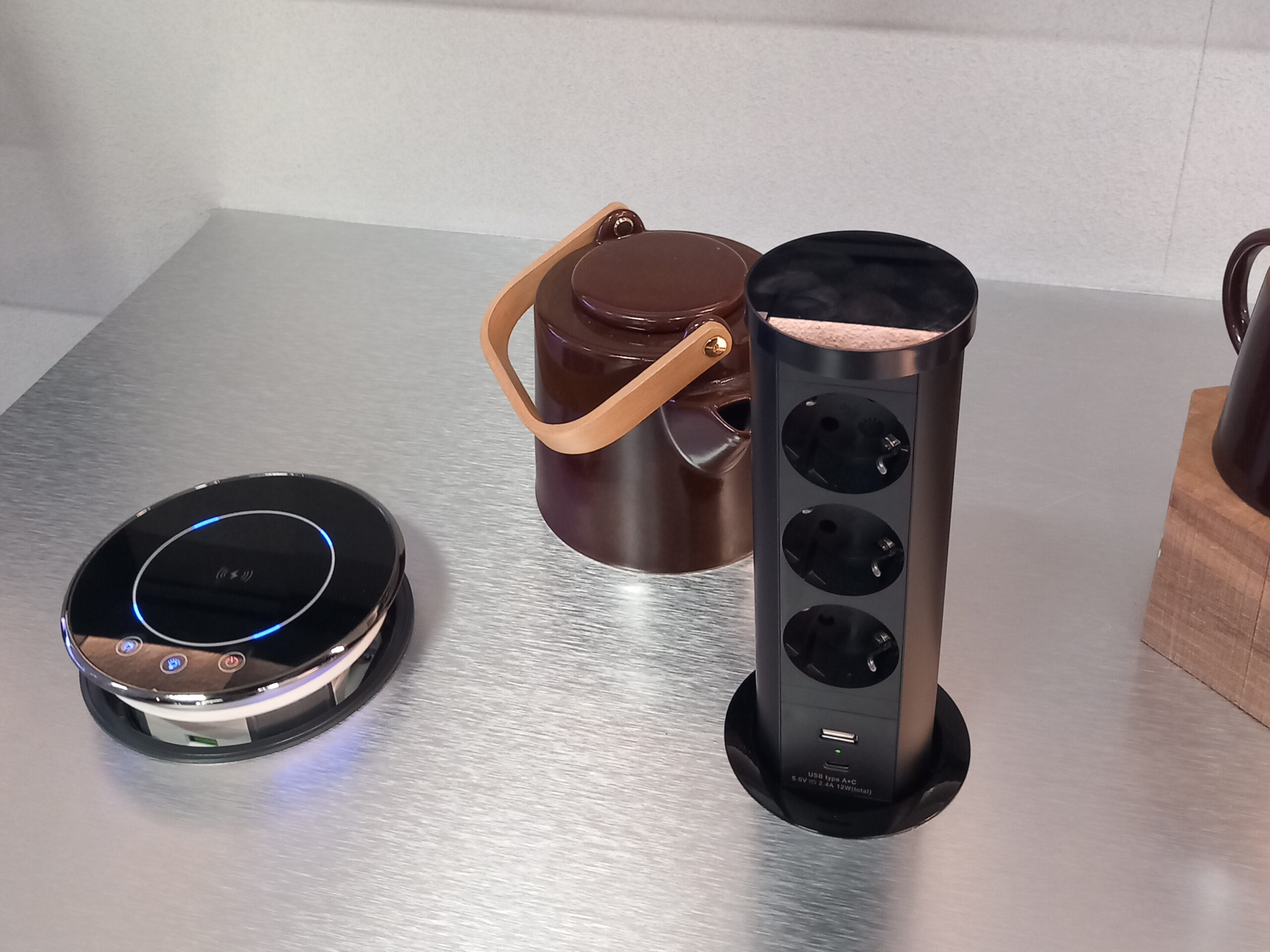 Y entre las incorporaciones más recientes de su catálogo se encuentran los enchufes sobre encimera que ofrecen diferentes soluciones de iluminación y conectividad para adaptarse a diversas necesidades. El modelo automático incluye un cargador inductivo y dos conexiones USB, facilitando la carga inalámbrica y rápida de dispositivos. El enchufe mecánico, con un sistema de presión, permite subir o bajar el módulo según se requiera, combinando funcionalidad y diseño compacto para optimizar el espacio.