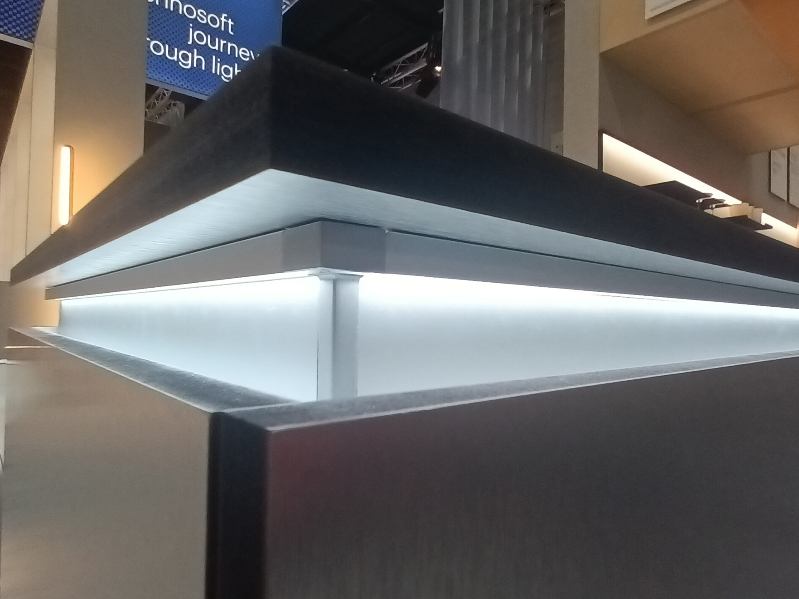 Como parte de sus nuevas soluciones, L&S en su stand presentó el sistema boiserie con iluminación horizontal integrada en su estructura. Ofrece máxima versatilidad para todo tipo de paredes, ideal tanto en espacios comerciales como residenciales. Permite soluciones de mobiliario con estantes o módulos móviles que integran fuentes de luz, combinados con diferentes tipos de materiales panelados (porcelánicos, maderas, vidrios, paneles Solaris …)