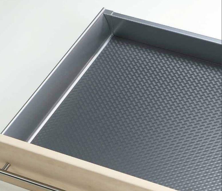 Máxima versatilidad para su utilización tanto en interiorismo de cocina como en armario. Son resistentes a la temperatura hasta 45ºC y aptas para alimentos. Evitan el deslizamiento y el choque entre sí de los objetos que se encuentran dentro del cajón durante la apertura y el cierre del mismo, amortiguando los ruidos y protegiendo las superficies contra golpes y arañazos.