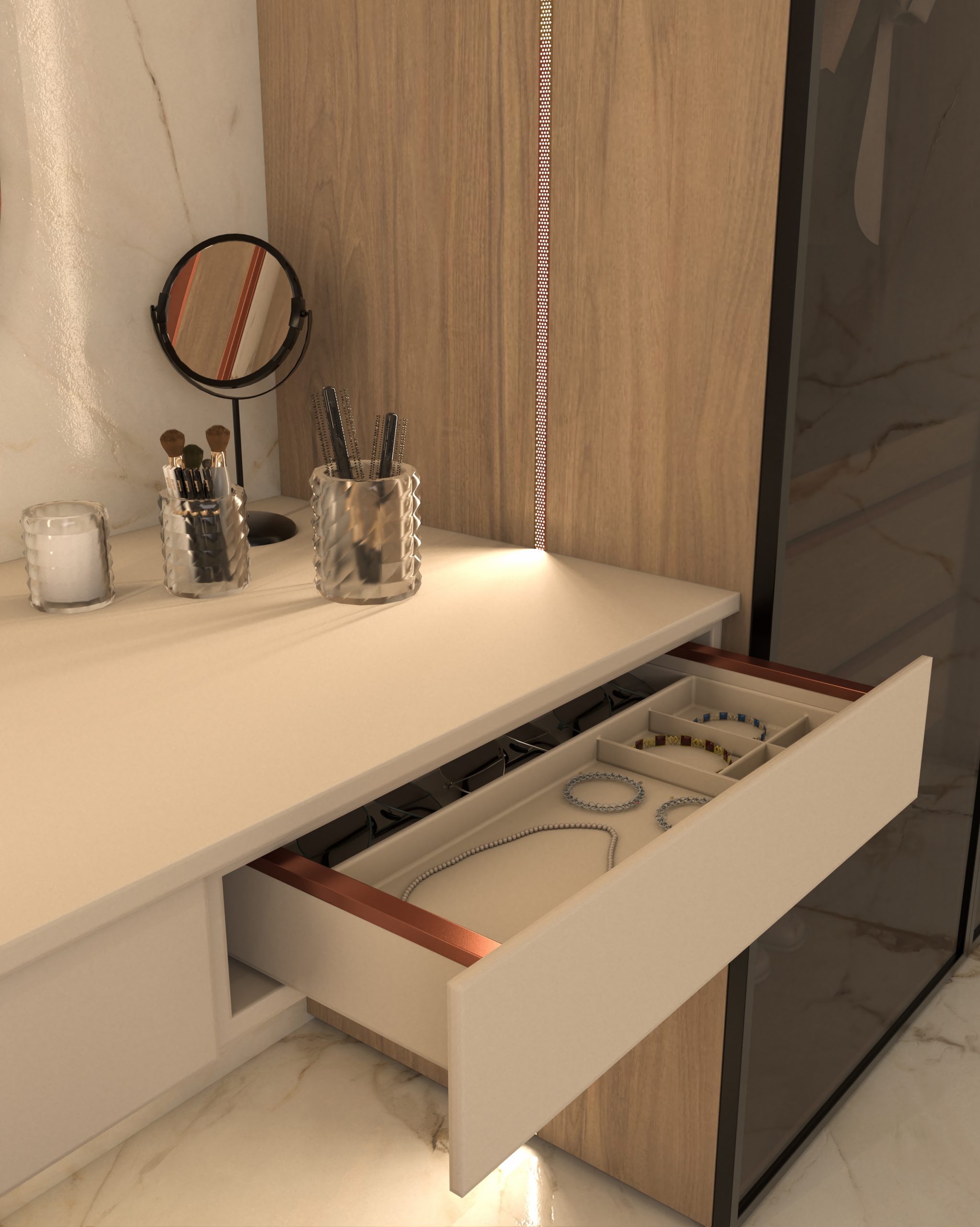 Este perfil está disponible en stock en una amplia gama de acabados: negro, antracita, noir sable, oro y cobre,  y es compatible con las Strip LED de L&S  en versiones en EDC (tecnología que permite un control temperatura de luz), cálida 3000K (ideal para ambientes acogedores y decorativos) y natural 4000K (perfecta para espacios donde se busca una iluminación neutra y funcional).