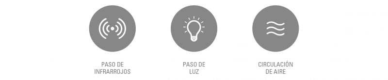 Las lamas microperforadas facilitan la circulación de aire para disipar los malos olores o el calor causado por el uso de electrodomésticos. Además, también permiten el paso de rayos de luz e infrarrojos para poder de este modo controlar dispositivos electrónicos mediante control remoto.