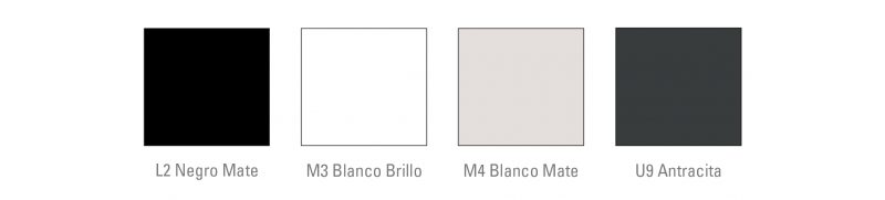 Disponible en diferentes acabados: Antracita (U9), Blanco Mate (M4), Blanco Brillo (M3) y Negro Mate (L2).