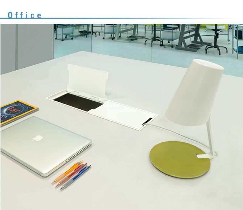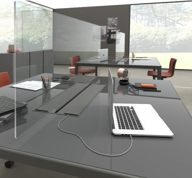 Easy Rack Office es un canal funcional con bandejas para cables y almacenaje que se integra en el escritorio de la oficina para la organización del puesto de trabajo.