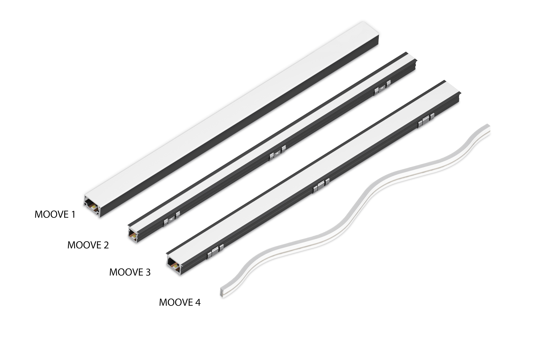 Soluciones de iluminación Moove para instalación horizontal o vertical.