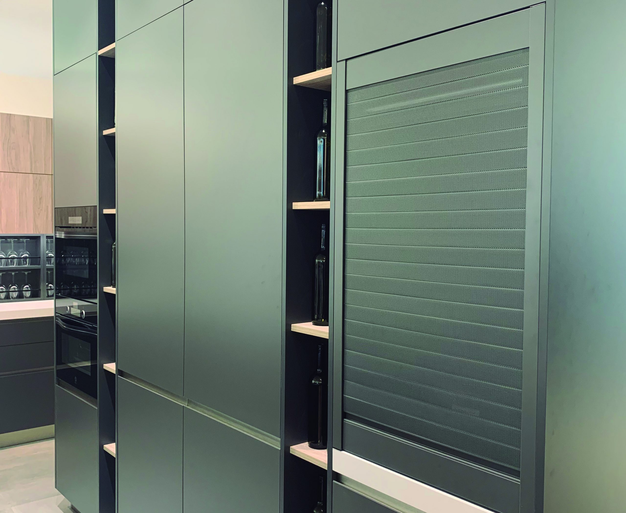 Persianas entre columnas, tienen el objetivo principal de optimizar la organización y facilitar el acceso a utensilios y pequeños electrodomésticos ubicados en su interior. También puede funcionar como despensa o desayunador en función de su ancho(los más habituales 600mm 0 1200mm). Estas persianas proporcionan un método eficiente y rápido de ocultación de su contenido a miradas curiosas cuando están cerradas, lo que contribuye a mantener un aspecto limpio y ordenado en la cocina.